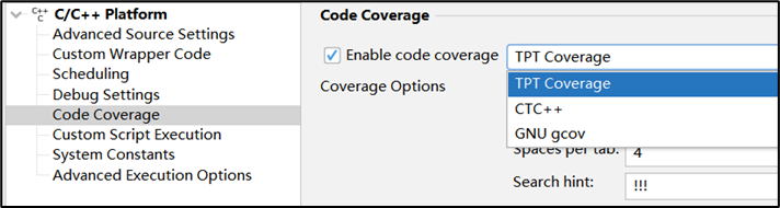 TPT When calculating coverage , Offers a variety of options , During the test, it can be decided according to its own situation .
