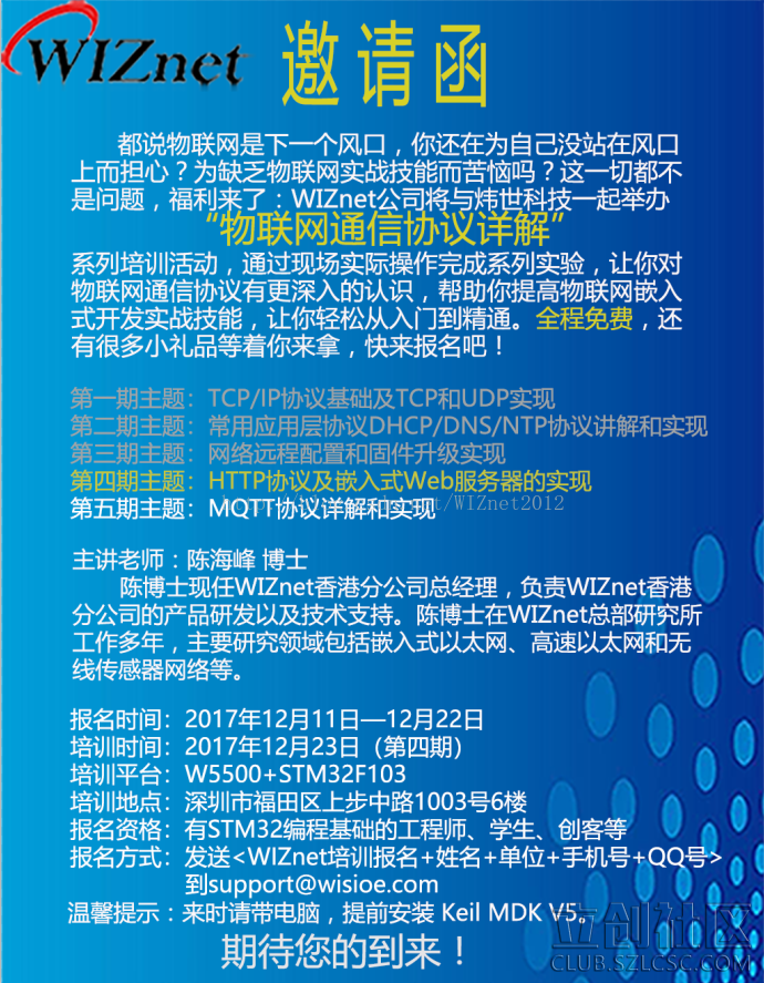 WIZnet嵌入式以太网技术培训公开课(免费!!!)