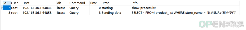 Attribute field explanation1) id Column , The user login mysql when , System assigned "connection_id", You can use functions connection_id() see2) user Column , Show current user . If not root, This command only displays the scope of user authority sql sentence3) host Column , Show from which ip On which port of , It can be used to track users who have problem statements4) db Column , Shows which database the process is currently connected to5) command Column , Displays the command executed by the current connection , Generally, the value is sleep (sleep), Inquire about (query), Connect (connect) etc.6) time Column , Shows the duration of this state , The unit is seconds7) state Column , Shows the... Using the current connection sql The state of the statement , A very important column .state Describes a state in the execution of a statement . One sql sentence , Take the query as an example , May need to go through copying to tmp table、sorting result、sending data Wait for the status to complete8) info Column , Show this sql sentence , It is an important basis to judge the problem statement