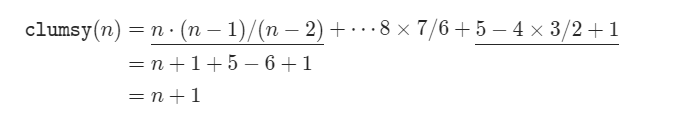 【数论】leetcode1006. Clumsy Factorial