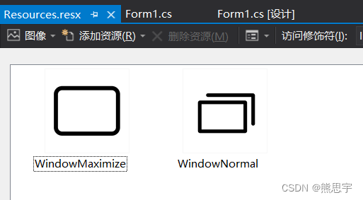 this.pictureBox1.Image = Properties.Resources.WindowNormal;2.界面选择