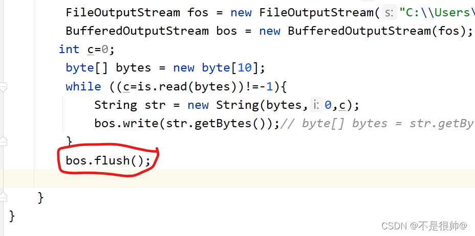 bos.write(str.getBytes());// byte[] bytes = str.getBytes(); Convert to byte array