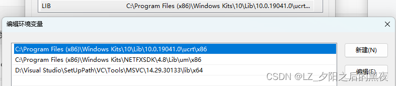 在环境变量中新建一个LIB 变量,并添加三个路径(记得加分号):