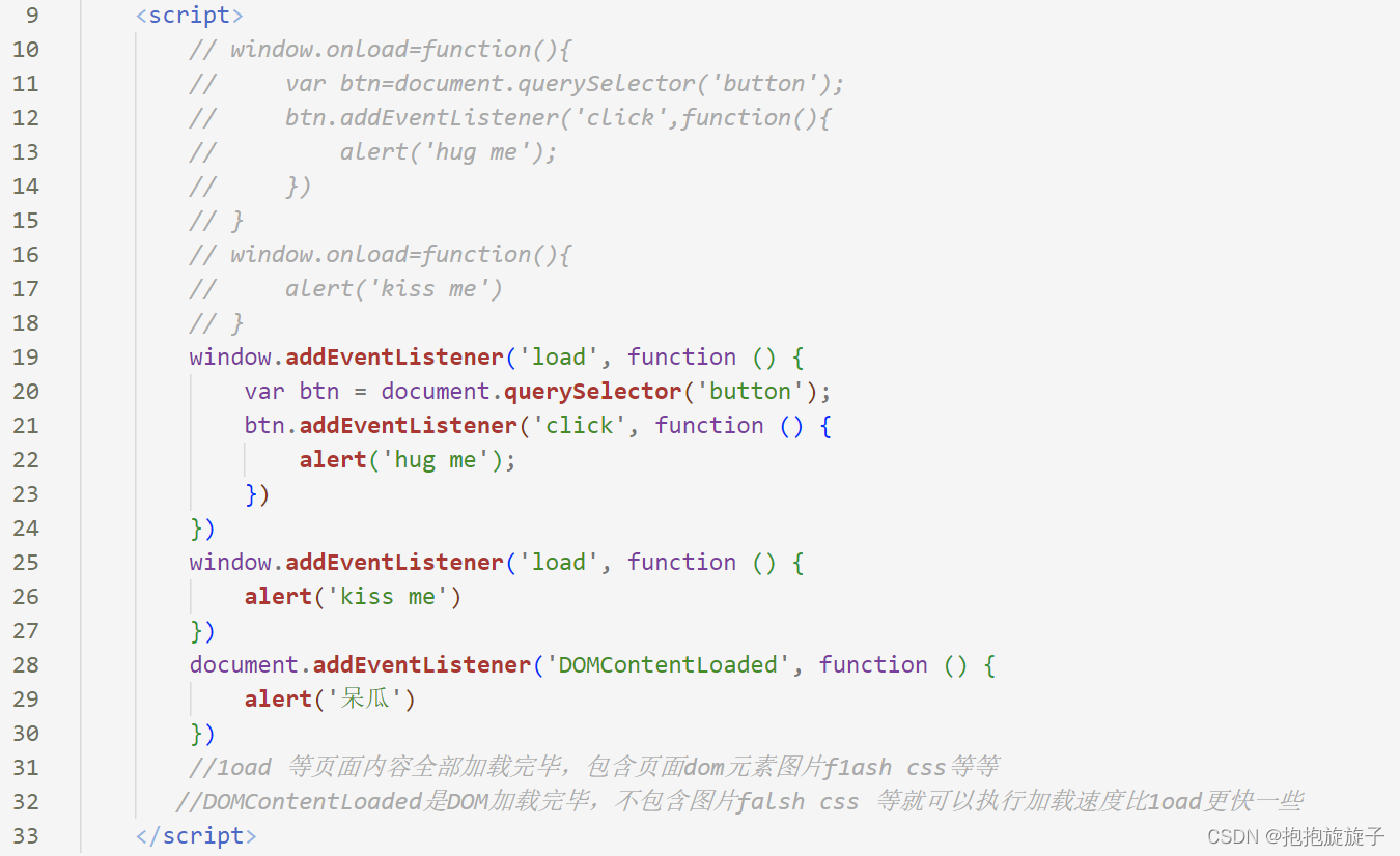 2. window.onload The traditional method of registering events can only be written once , If there are more than one , I'll take the last window.onload Subject to .