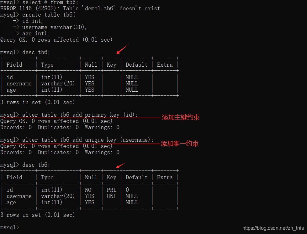 - alter table table_name add Constraint keywords (table_col_name);
