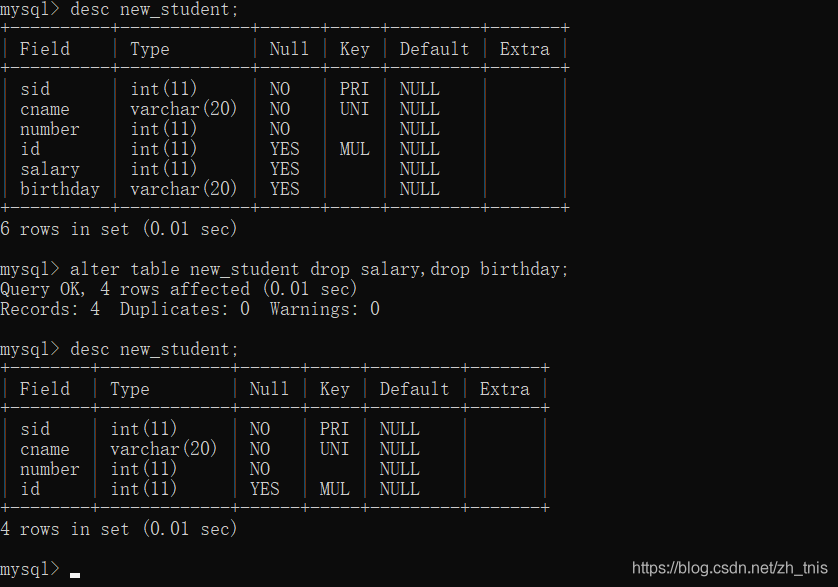 - alter table table_name drop table_col_name1,drop table_col_name2;