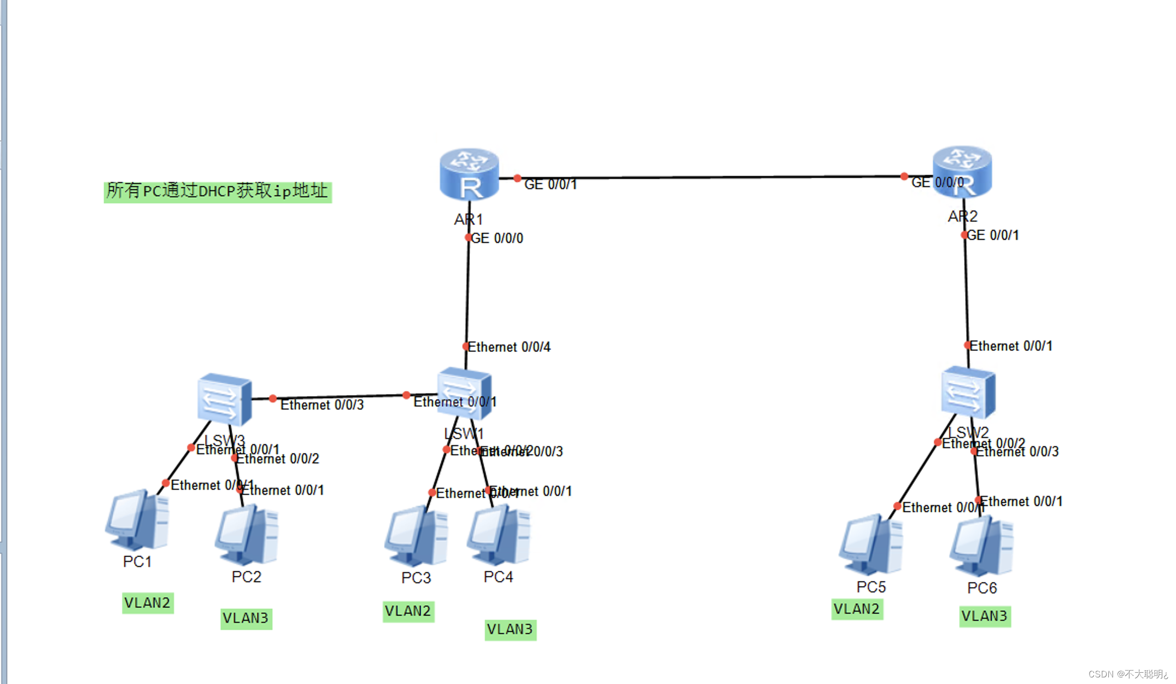 Configure , Most of the requirements of the experiment have been completed , Only through DHCP Decentralization IP
