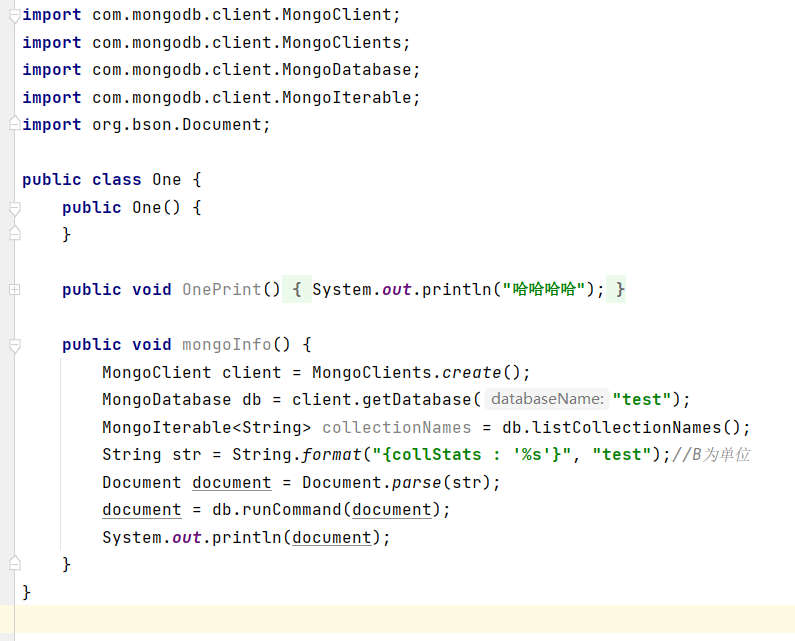 String str = String.format("{collStats : '%s'}", "test");//B为单位