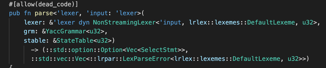 - 再分析,每次解析的时候,都会初始化一个 actions 的数组,随着 grammar 中语法规则的增多,actions 的数组也会随之增大,且数组元素类型是 dyn trait 的引用,在运行时是有开销的。