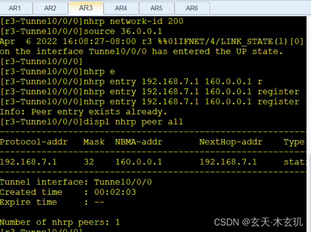 3、 Create two tunnels , With a R4/R5, With a R2/R3, Tunnel configuration , Turn on the central routing protocol , Enable pseudo broadcast . At the tunnel interface , Turn on OSPF, because OSPF stay MGRE To think in silence P2P Network type , It is amended as follows P2MP that will do . If it's changed to Broadcsat, You need to R2 and R3 Of DR Election closed , Change the priority value to 0( Abandon the election ).