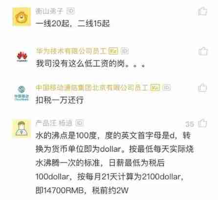 Some netizens also said that such a salary , Maybe the interviewer doesn't know what to do , Now there are experienced and competent employees , At least one month after tax in Huawei 2 All the , As a result, you are less than 20000 before tax , Sorry, the interviewer doesn't contact you .