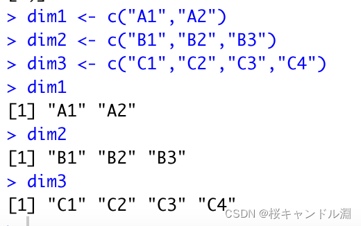 Vectors use <-c To assign a value , among , The separator for each element of the vector is “,”