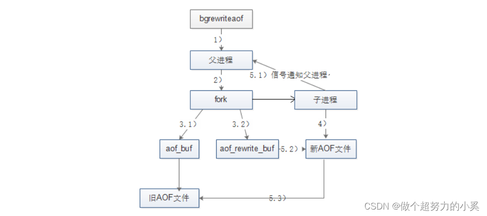 ● Manual trigger : Call directly bgrewriteaof command , The execution of the order is related to bgsave Some similar : All are fork The subprocess does the specific work , And only in fork Time blocking .