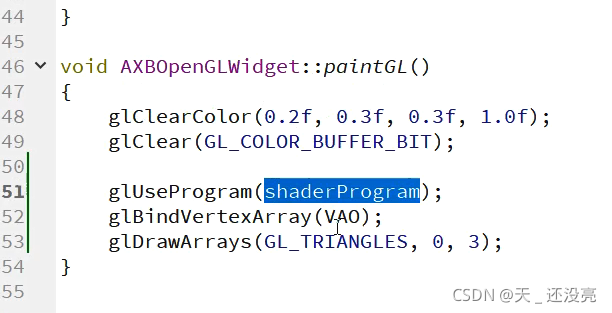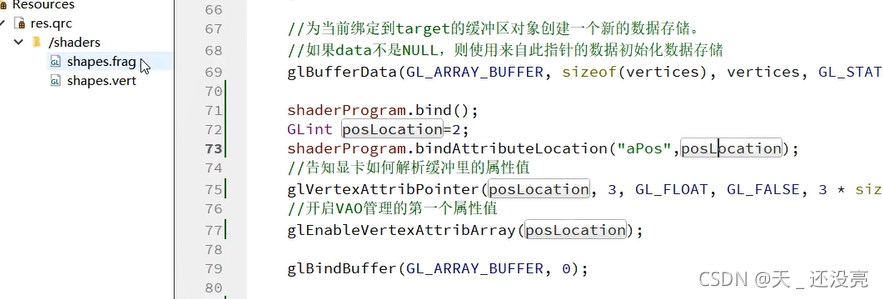 Before drawing figures Using shaders ,VBO Actual stored data ,VAO Store a series of operations