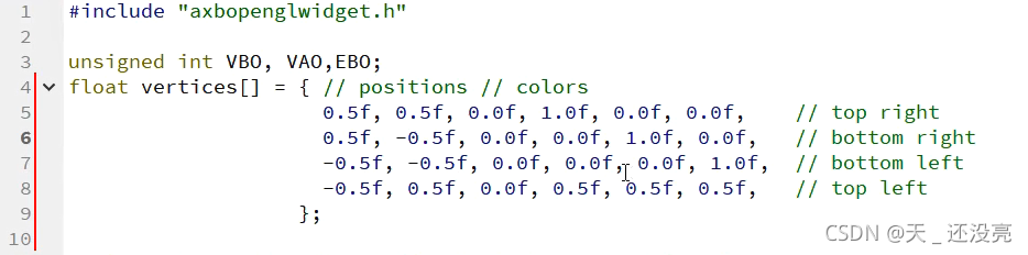 glDrawArrays(GL_TRIANGLES,0,6); // from 0 Start looking for 6 A little bit