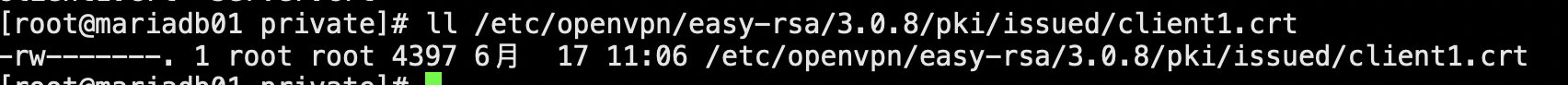 ./etc/openvpn/easy-rsa/3.0.8/easyrsa build-client-full client1 nopasspki目录下的private和issued子目录分别生成client1.key和client1.crt文件。