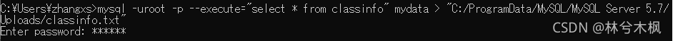 example :mysql> select * from mydata.classinfo into outfile '…/class.txt'