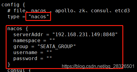 命令:$ sh nacos-config.sh -h 192.168.231.149 -p 8848 -g SEATA_GROUP