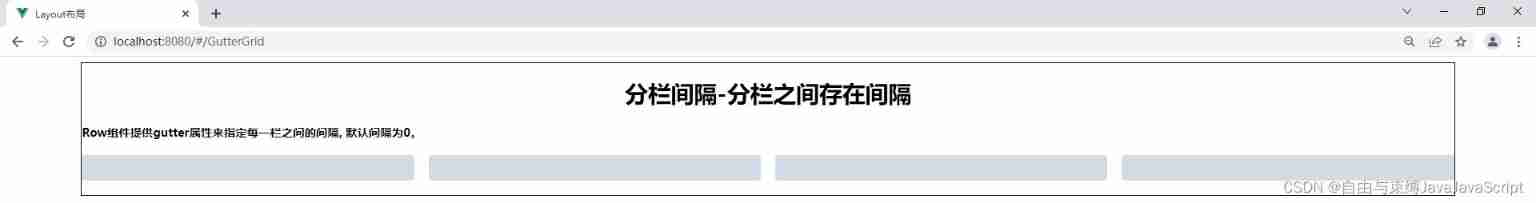 <h4>Row Component supply gutter Property to specify the interval between each column , The default interval is 0.</h4>