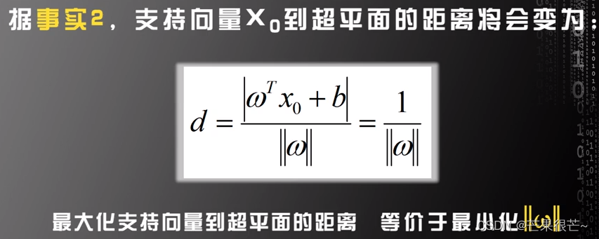 use a De zoom wb, So that on the support vector =1, On non support vectors >1 ( The facts 1); The formula of the distance from the support vector to the hyperplane , The molecule is 1