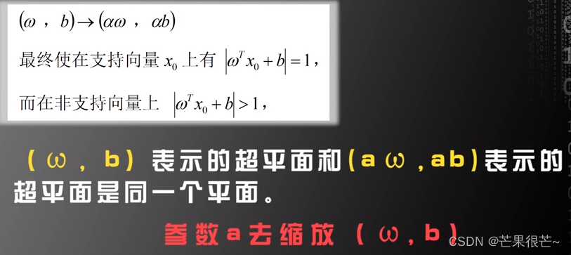 (>=1 You can change to >=2,w,b There's only one difference a, The facts 1 The description is the same hyperplane )