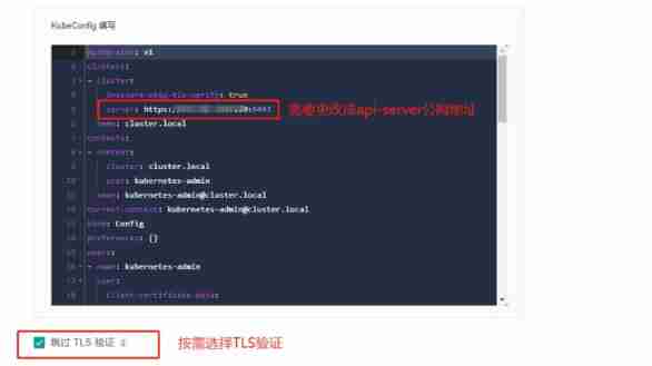 cat $HOME/.kube/config( Two ) Please make sure kubeconfig in cluser.server The address of the field can be accessed through the public network , Or check skip at the same time TLS Verify import