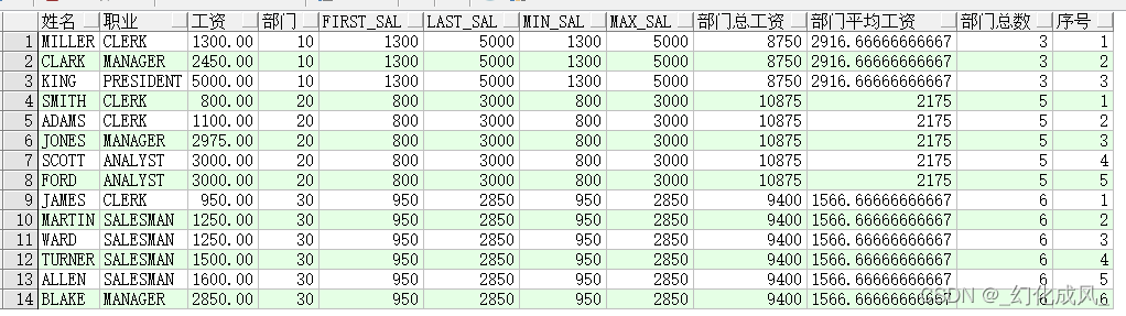 min(sal) over(partition by deptno) Departmental minimum wage ,