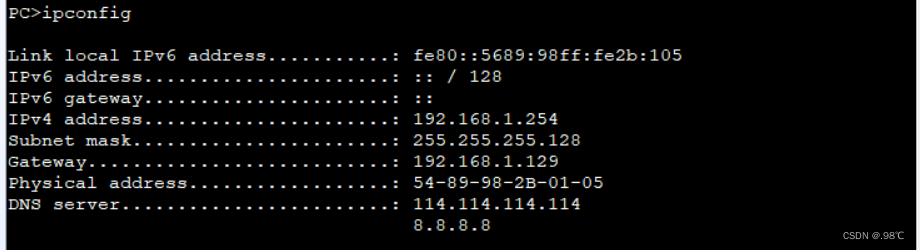 [r1-GigabitEthernet0/0/1.2]ip add 192.168.1.129 25