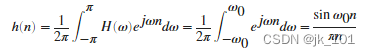 Suppose a cut-off frequency is ω0 radian / Second ideal rectangular digital low-pass filter . The filter has an amplitude less than ω0 Has amplitude at all frequencies 1, The amplitude is between ω0 and π There is an amplitude in the frequency between 0. Its impulse response sequence h(n) by :
