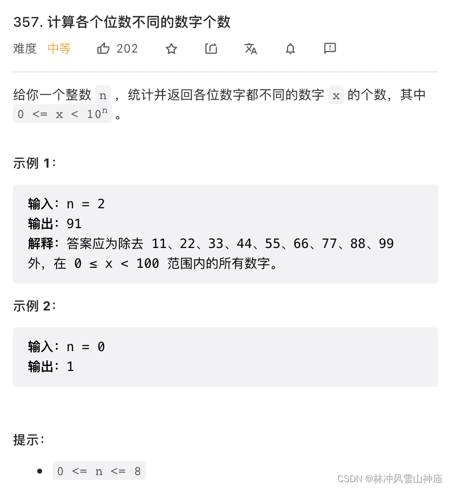 著作权归作者所有。商业转载请联系作者获得授权,非商业转载请注明出处。357 计算各个位数不同的数字个数