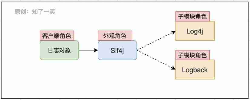 The components of the log follow the design pattern ,Slf4j As the appearance object of the log system , Define the criteria for the specification log , The specific implementation of logging capability is entrusted to each sub module ;Slf4j Specify the loading method and function interface of log object , Interact with the client to provide log management function ;