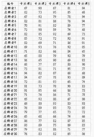 Currently, an enterprise plans to recruit 5 Researchers , The candidates have 30 name , The enterprise has conducted a written examination of five professional aspects , And record 30 The scores of candidates . Due to the information overlap in the scores of professional courses , Therefore, we can not simply add the scores directly to evaluate the professional quality of the candidates . Therefore, the independence weight is used for calculation , It is convenient to get a more scientific and objective evaluation , Select the most suitable candidate . The data of this study are as follows :