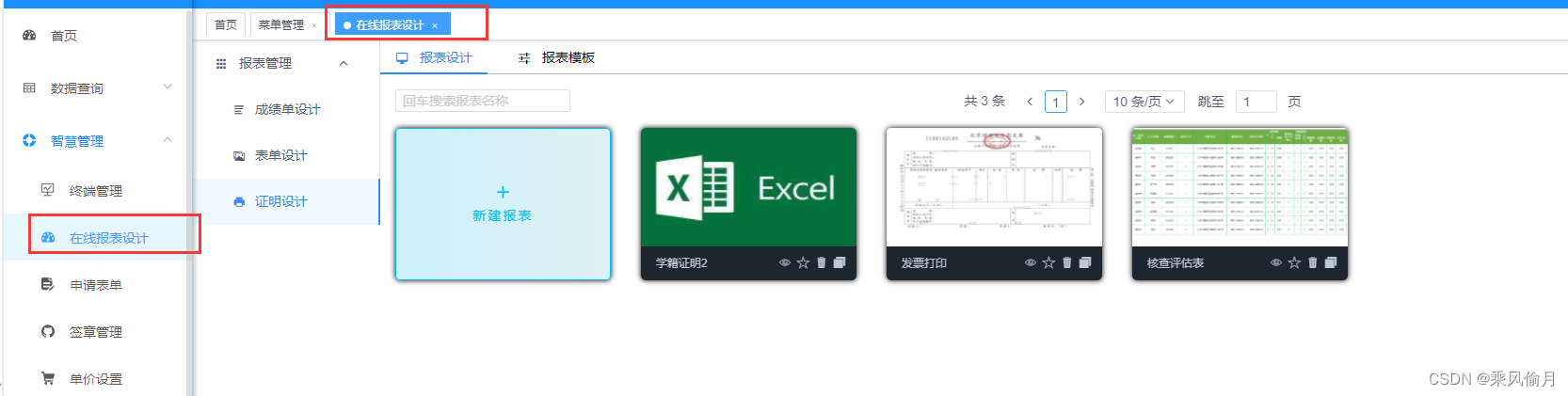 Go back to the menu , Click the online report design menu , As shown in the figure below
