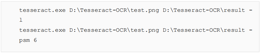 //图片路径 D:\Tesseract-OCR\test.png 生成 txt 文件存放路径及文件名 result