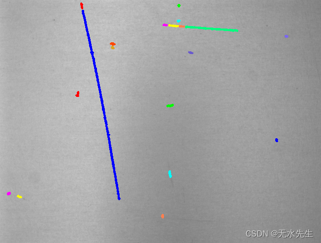 如下图中,将划痕部分检出来。