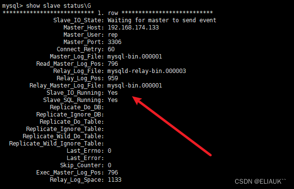 change master to master_host = '192.168.174.133', master_user = 'rep', master_port=3306, master_password='123456', master_log_file = 'mysql-bin.000002',master_log_pos=120;