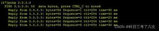 3、R7 Pull a separate network cable to ensure access to the public network ,R7 You can visit R2、R3、R4 Loopback .