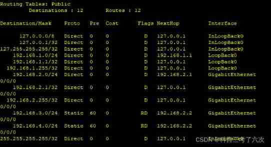 [r5]ip route-static 192.168.2.0 24 192.168.3.2