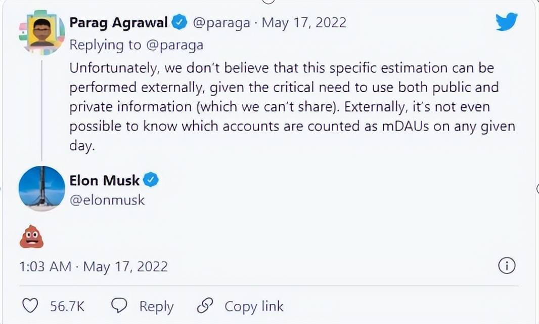 到了5月16日这一天,推特CEO帕拉格·阿格拉瓦尔(Parag Agrawal)发布系列推文,为推特打击垃圾账户的能力进行辩护。