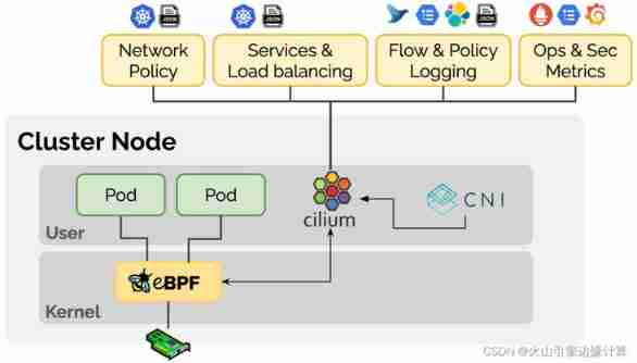 Cilium Agent When configuring network and security , use eBPF Program implementation .Cilium Agent Combine container identification and related strategies , Generate eBPF Program , And will eBPF The program is compiled into bytecode , Pass them to Linux kernel .