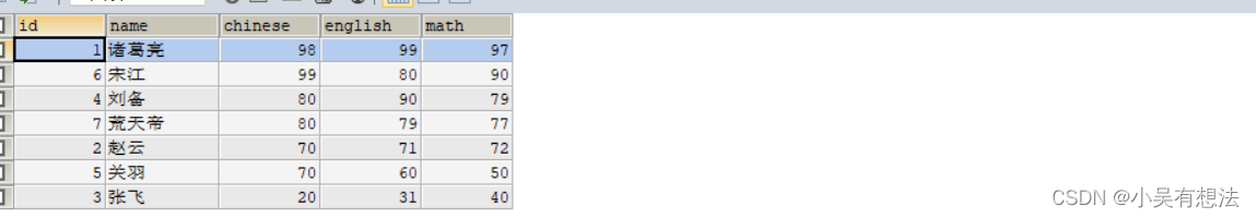 - Order by Specify the columns to arrange , The sorted column can be either the column name in the table , It can also be select The column name specified after the statement