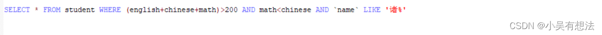 Total query score greater than 200 branch , And the math score is less than the Chinese score , A student surnamed Zhu