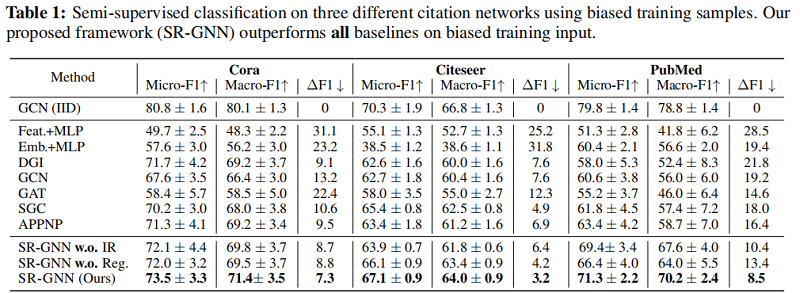 First, in the node feature $X$ Apply feature encoder on $\mathbf{F}$, And linear approximation personalized pagerank matrix. therefore , We have $h_{i}=\pi_{i}^{\mathrm{ppr}}$, among $\pi_{i}^{\mathrm{ppr}}$ Is a personalized page vector . So , We use instance weighting to reduce the distribution shift caused by graph induction bias . Besides , Give Way $Z=\mathbf{F}(\Theta, X)$ And we can further reduce the distributed displacement of the nonlinear network $d$. In our experiment , We showed SR-GNN In the other two representative GNN Application on the model :GCN[15] and DGI[32].