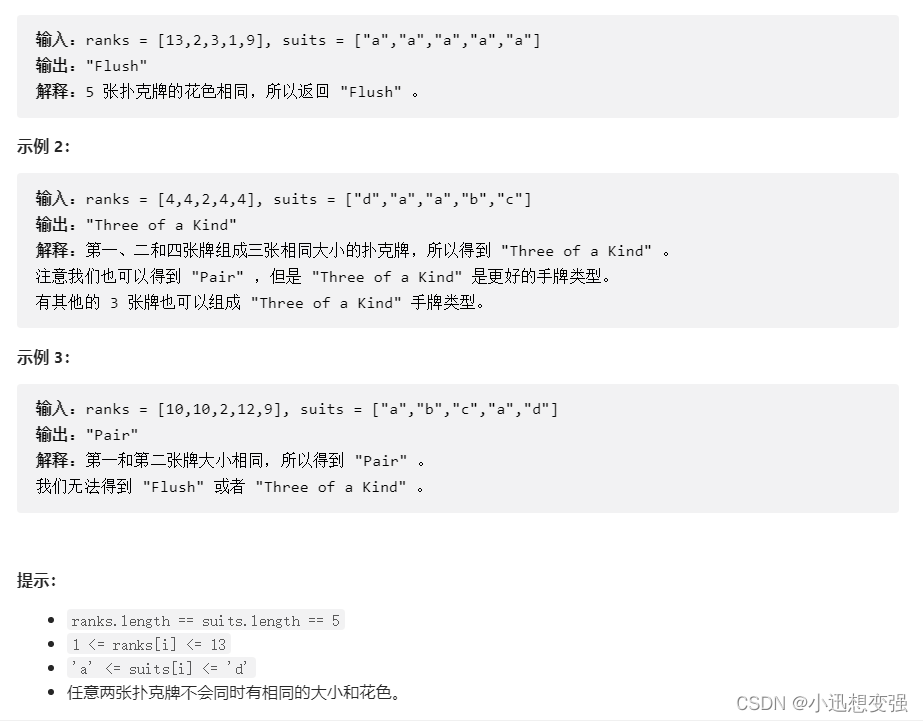 当前位置:网站首页>Leetcode · 83 biweekly match · 6128. best poker hand · simulation