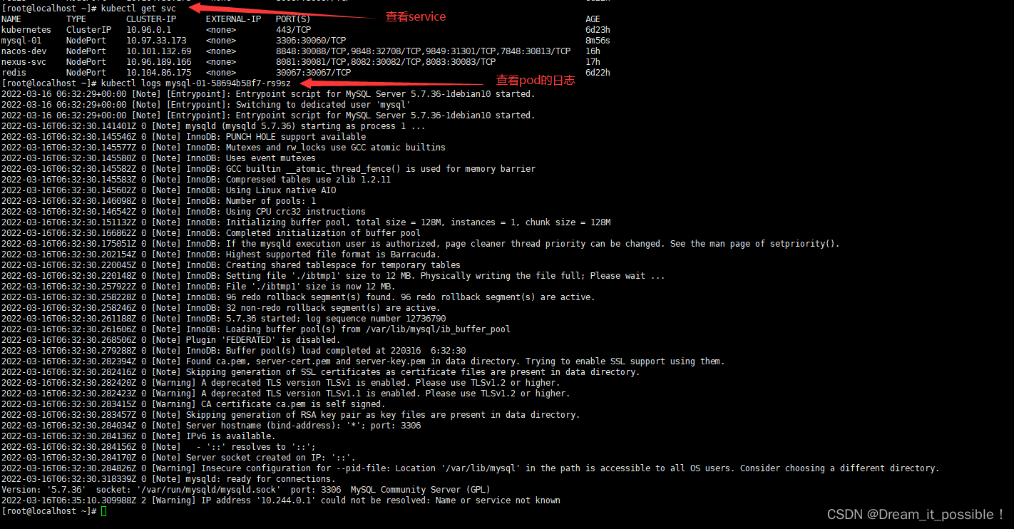 [[email protected] ~]# kubectl logs mysql-01-58694b58f7-rs9sz