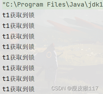 public class Reentrant { public static void main(String[] args) { Counter counter1 = new Counter(); Counter counter2 = new Counter(); Counter counter3 = new Counter(); Thread t1 = new Thread(() -> { counter1.increase2(); }, "t1"); Thread t2 = new Thread(() -> { counter2.increase2(); }, "t2"); Thread t3 = new Thread(() -> { counter3.increase2(); }, "t3"); t1.start(); t2.start(); t3.start(); } private static class Counter { // When synchronized Modified static method , It's equivalent to putting Counter All objects of this class are locked // Actually, it's locked Counter Class class object , Globally unique synchronized static void increase2() { while (true) { System.out.println(Thread.currentThread().getName() + " Get lock "); try { Thread.sleep(1000); } catch (InterruptedException e) { throw new RuntimeException(e); } } } } }