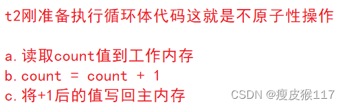 t2 In working memory count = 0,+1 Operation makes count from 0 Turn into 1, After the count = 1 Write back to main memory ;