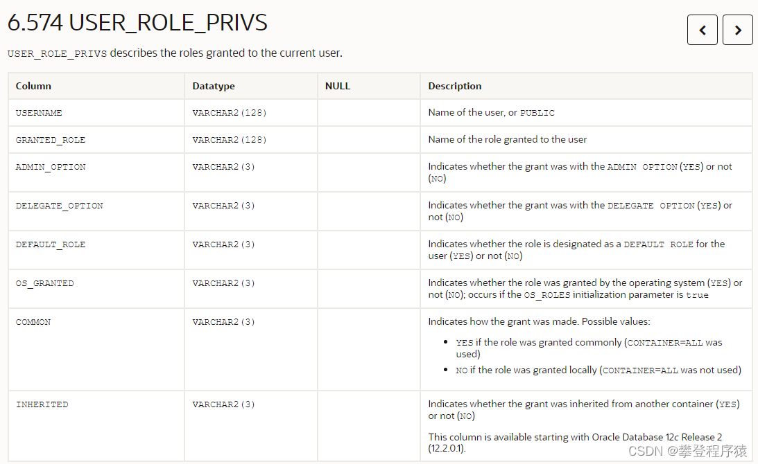 (2)SELECT * FROM USER_ROLE_PRIVS; // 查看当前用户的角色