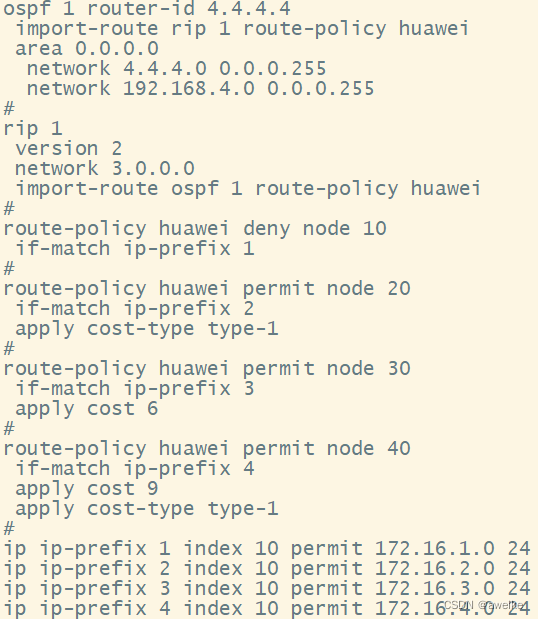 [r4-rip-1]import-route ospf 1