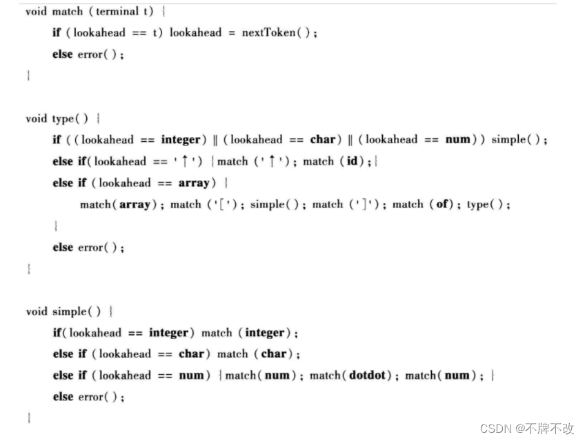 Top down parsing is an abstract idea , That is, the analysis tree is established in the order from root node to leaf node , To realize the analysis of grammatical sentences . Predictive analysis is the concrete implementation of this idea , For example, what kind of data structure and algorithm are used . According to the adopted algorithm ( Whether to adopt recursive method ) Different , Prediction analysis can be divided into ” Prediction analysis using recursive descent technique “ and “ Predictive analysis table driven predictive analysis using non recursive algorithm ”. The analyzer is a more specific embodiment of predictive analysis , That is, a program to realize prediction and analysis .